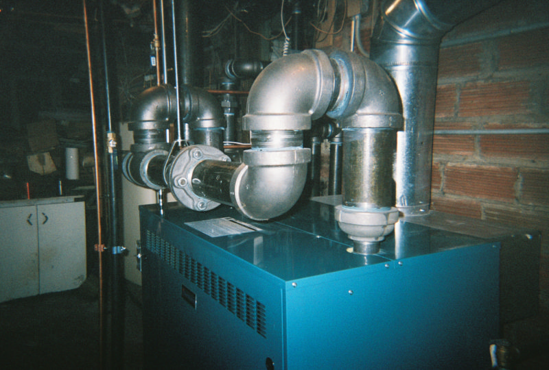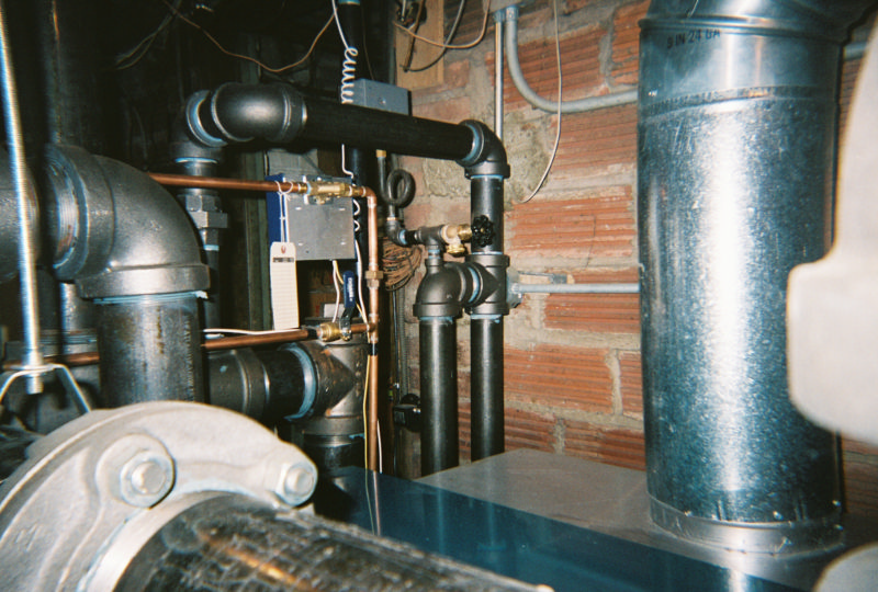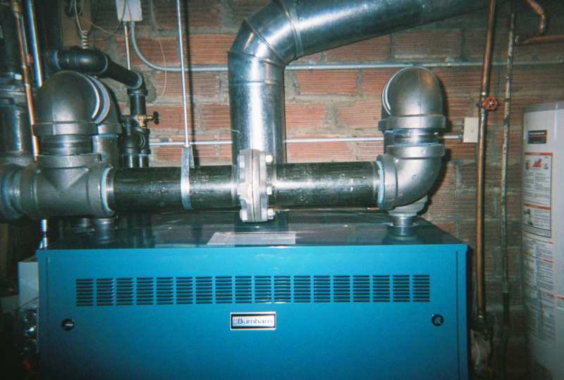 This is another Mouat vapor system that we put a new steam boiler on. This system has waterseal traps. We installed a main return vent utilizing the very good venting capacity of a Monash thermostatic valve. This system also has a false water line.