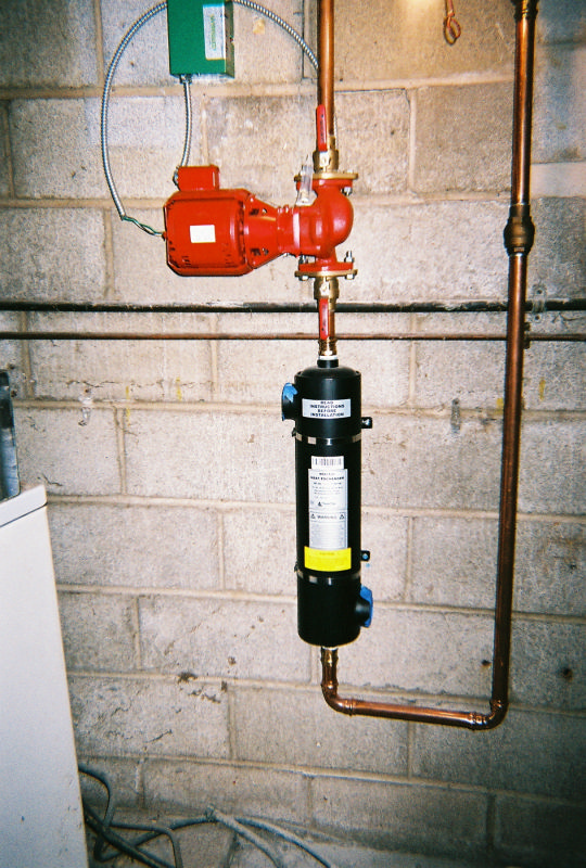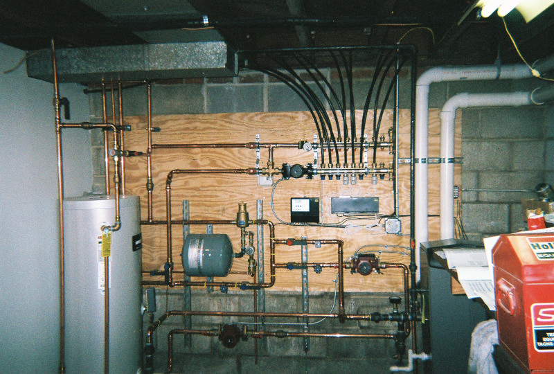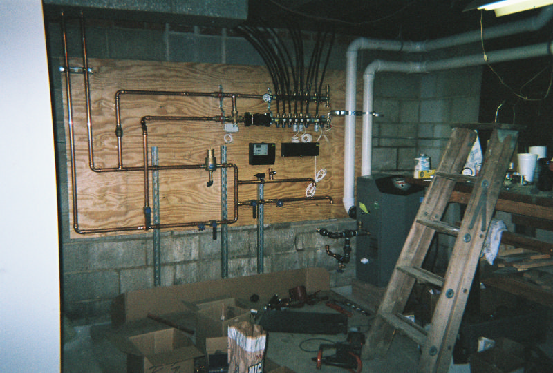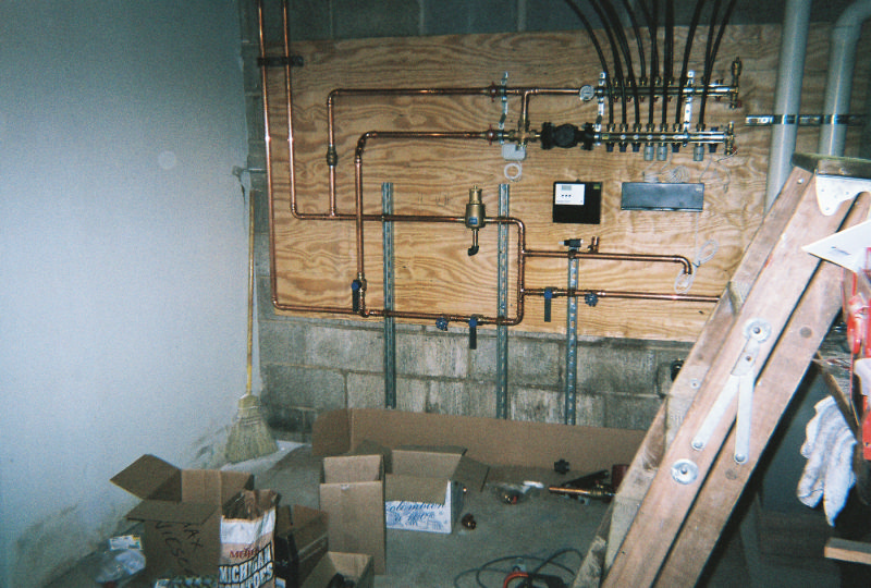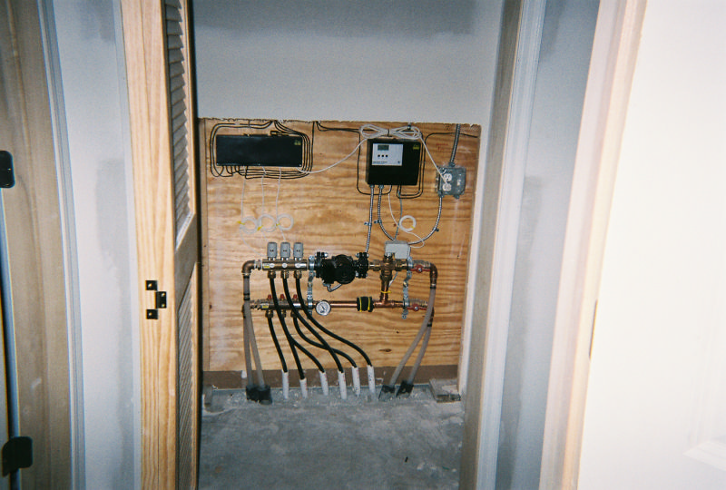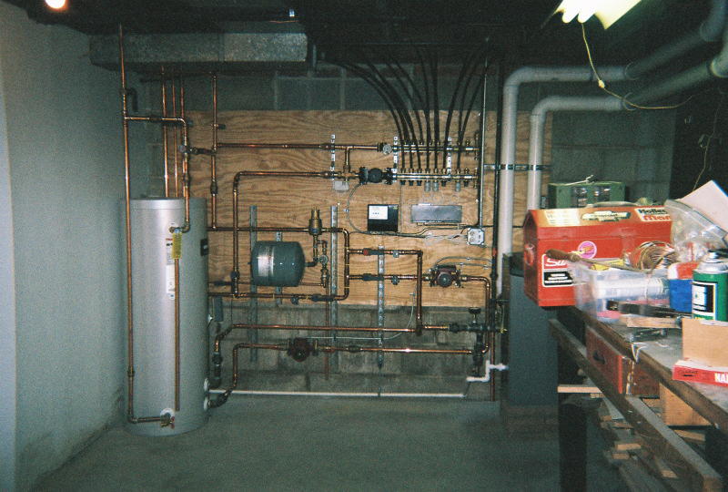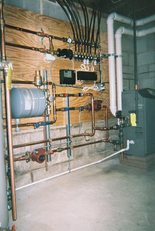 This boiler installation is the heat source for about 2000 square feet of radiant floor tubing imbedded in a concrete slab. It also supplies the heat to make the domestic hot water for the household use. There is also a heat exchanger that will eventually heat the swimming pool and that is also part of this boiler. The boiler is a Lochivar Knight modulating & condensing design.