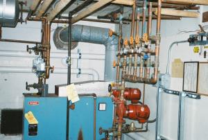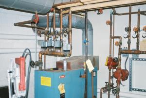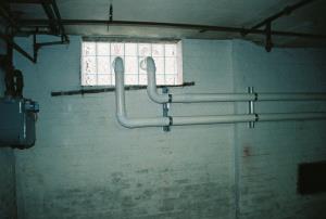 This was a refit job on a more modern installation that someone did probably back in the 60's. The difference between a refit and a new installation is that on a refit, much of the old piping and components is reused. On a new installation obviously everything is new. In this case, the owner wanted a modern boiler but didn't really want to replace everything. We can do this. We removed the Old Bryant boiler and plugged the chimney opening. Then we parked a Lochinvar Knight boiler just to the right of the old installation. The area where the old boiler was is reserved for a future installation of an indirect waterheater. The new boiler required hydraulic separation from the house piping and a Caleffi Hydo Separator was installed to do this. We kept the old control system for all the zone valves, and kept intact, but moved against the wall the zone valve station. It wasn't part of the job to move the zone valve manifold but we did it anyways because it made for a ''cleaner'' looking job. The venting was brought along the wall, and we had a glass company make a special glass block window with holes drilled through the glass. This makes for a nice look as far as penetrations go. We were close to the ground so we snorkled up the vent and air intake to stay above the expected snow level.