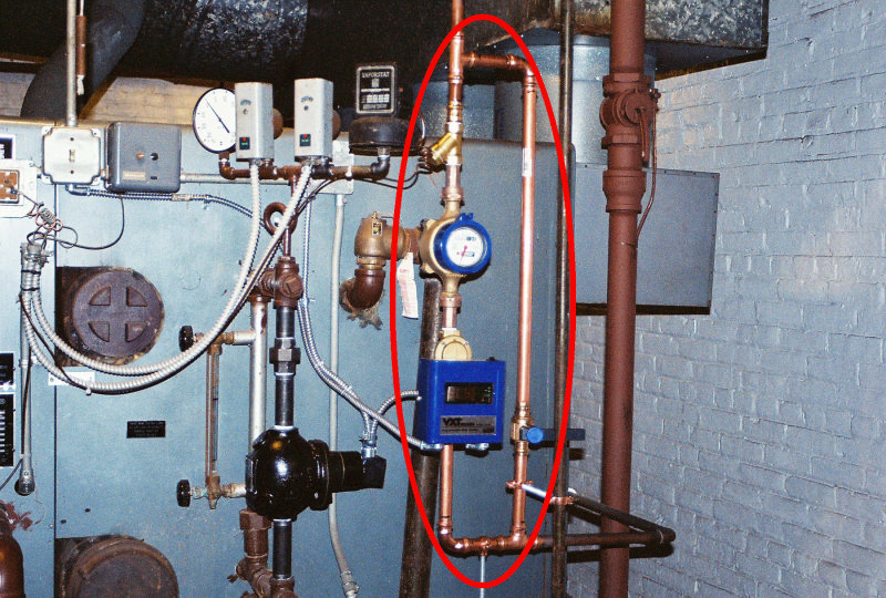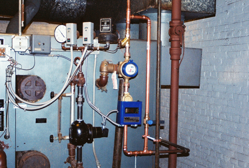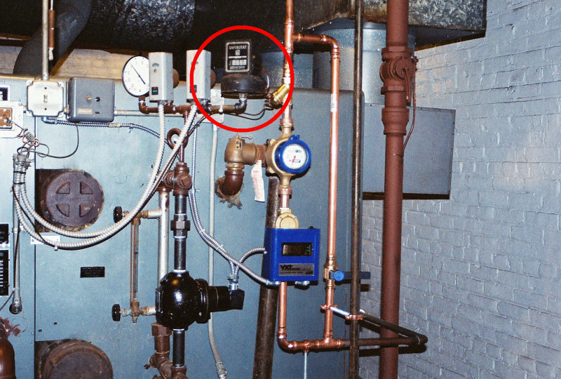 The boiler in this church is pretty darn big, as you can imagine. Since it really is three boilers built as one, we shut down the middle third of the boiler and equipped the last section to turn on and off on a vaporstat. This gives the boiler high fire/low fire capability and somewhat compensates for the fact this boiler is big enough to handle not just the church but two other buildings as well. The combination mechanical water feeder/low water cutoff was replaced with separate controls.