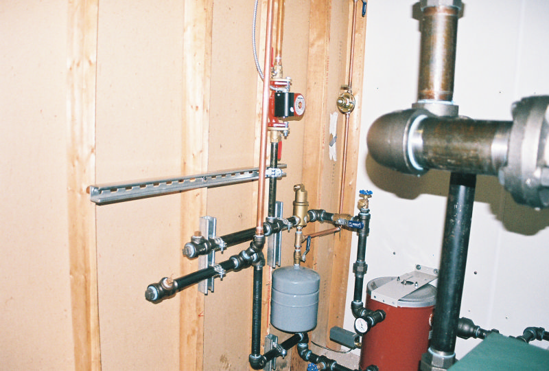 This job was the replacement of a steam boiler and the second floor addition had been heated by a water heater tank that supplied water to a run of fin tube baseboard. The homeowner said it never really worked well, so we took the water zone off of the new steam boiler via a heat exchanger tank. Steve also increased the main venting capacity of the system.