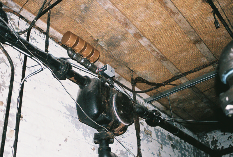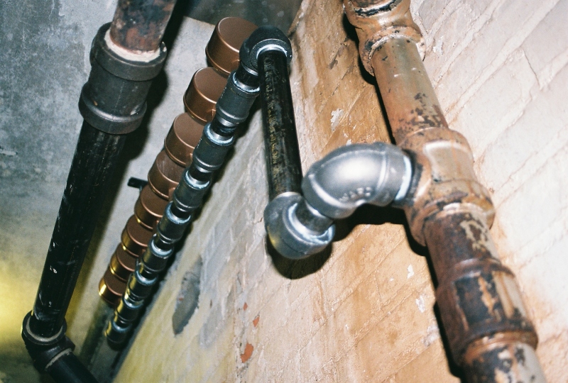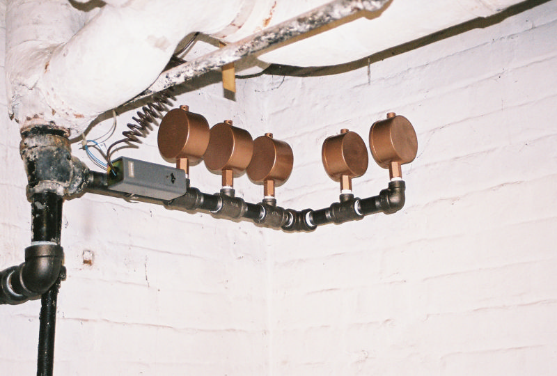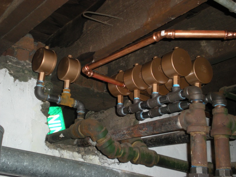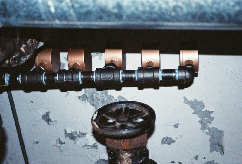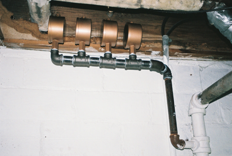 Looking up at a 1'' manifold of main vents.