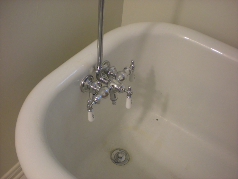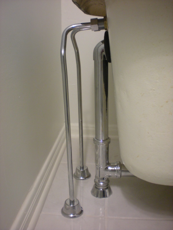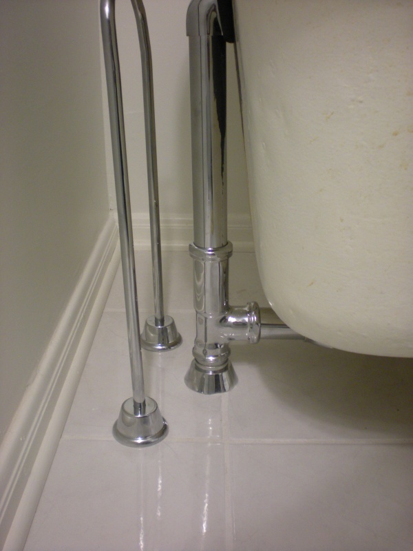 This job started with a request to install a shower over a ball & claw tub. I looked at the job and the first thing I noticed was the drum trap and old plumbing going to the tub. It looked like a landmine to me. The toilet was also a wall hung toilet that was already leaning and was going to fall off the wall soon. I recommended some upgrades. We opened the floor and replaced the tub piping. We repiped the water to the toilet and upgraded its flange. After the flooring guys finished we reinstalled the tub with new fixtures, and replaced the toilet. These ball & claw tub jobs are fun because very careful measurements are needed during rough in or the set and finsh won't go well.