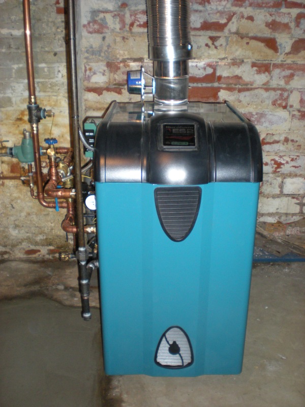 We removed a coal boiler and replaced it with this Burnham ES-2 model boiler. The boiler is on a gravity hot water system that we converted to forced hot water. This is still a cast iron boiler but is the ultimate in cast iron efficiency wise.