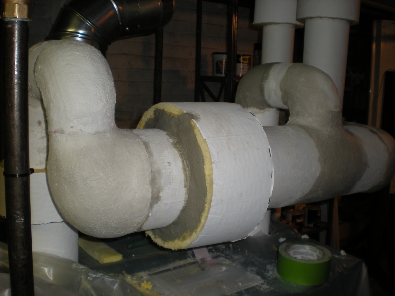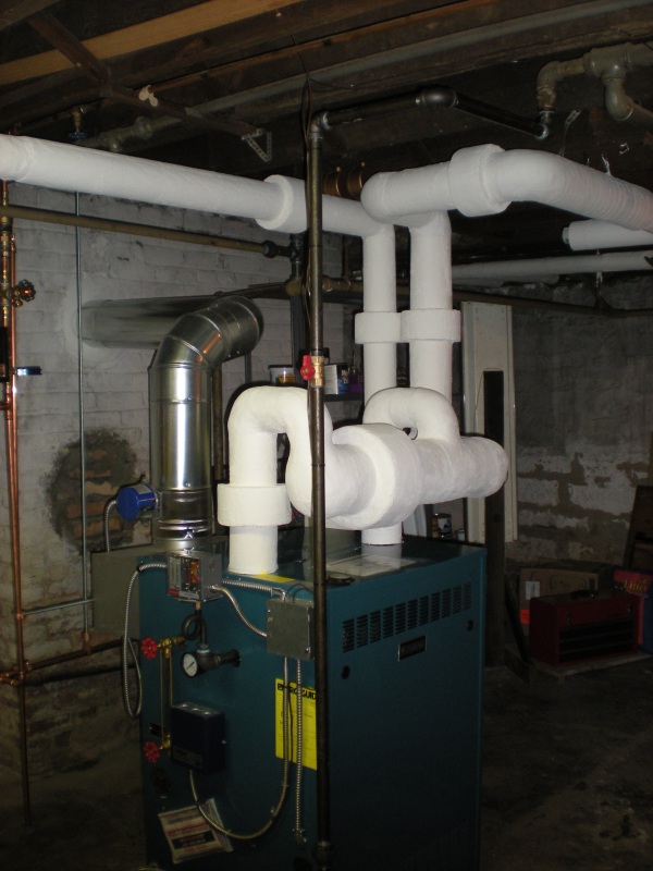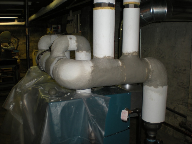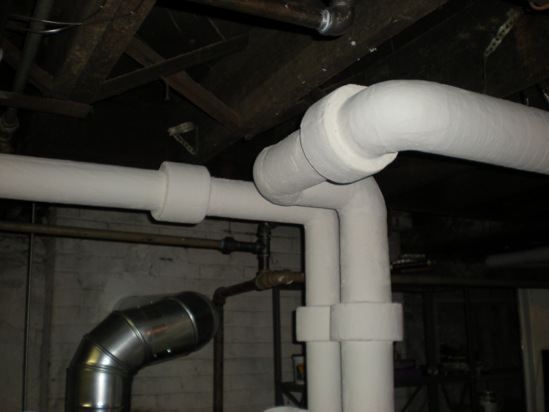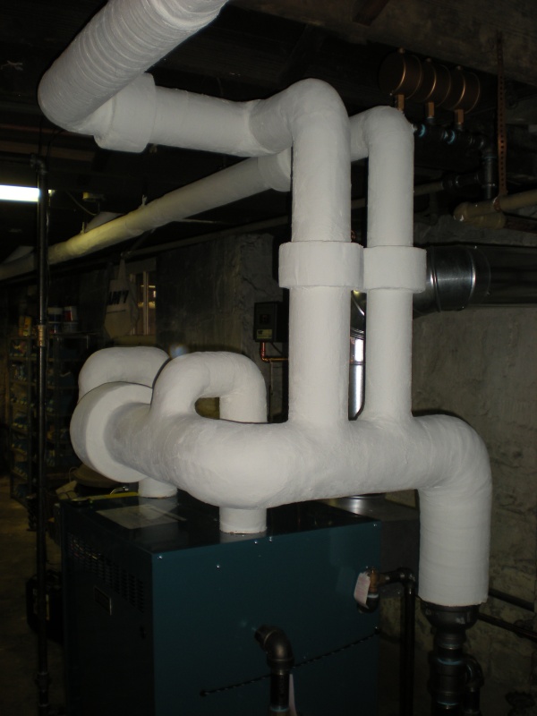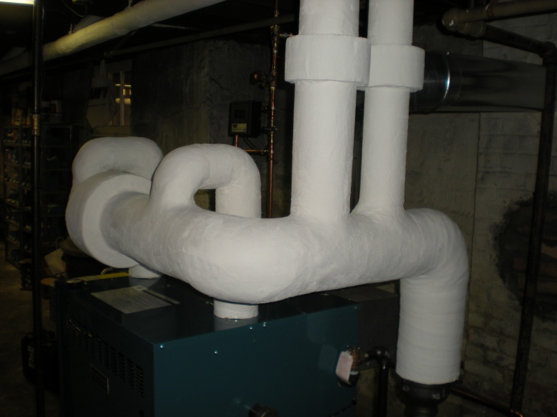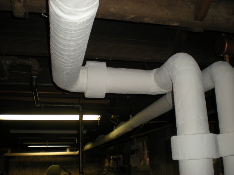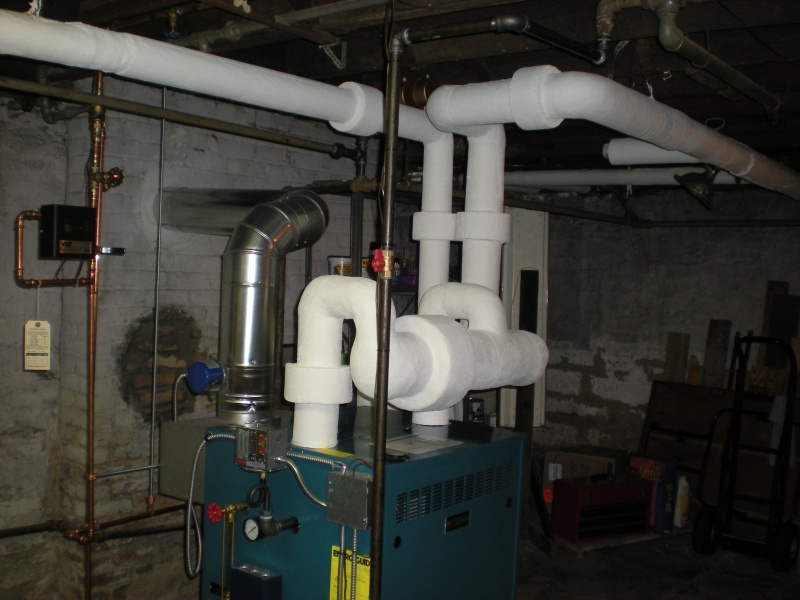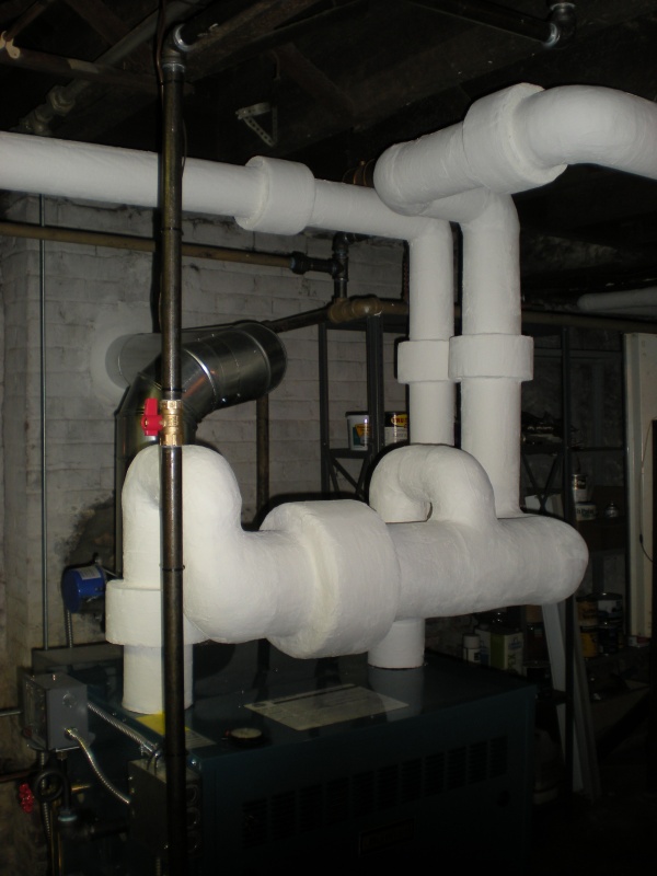 The boler in this house was replaced and the customer asked us to also insulate the piping when we were done. These shots show the sequence of events in the installation of the insulation.
