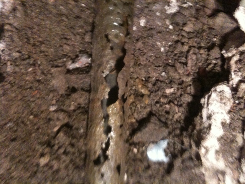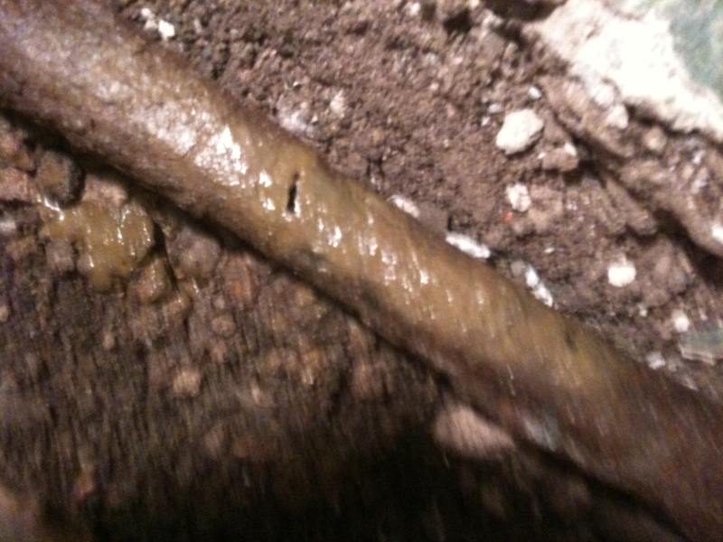 We dug up this underground return pipe because the water feeder alerted us to the alarming amount of fresh water that was being consumed by the system. This is what we found!
