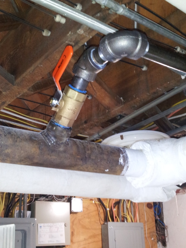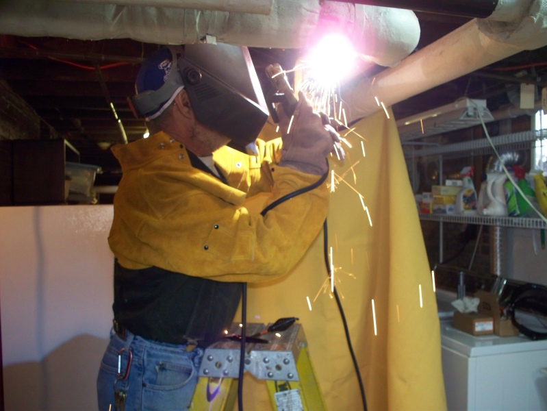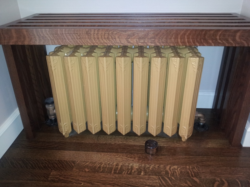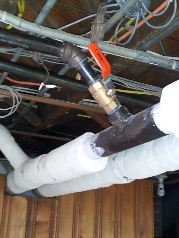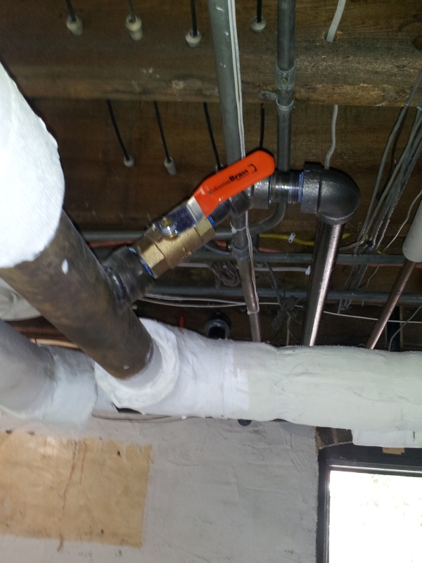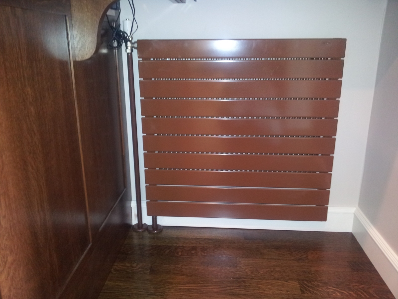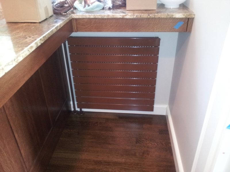 This kitchen remodel had us remove, powder coat and relocate to the mud room the cast iron radiator that was previously in the kitchen. We drilled holes in the mains and welded thread-o-let bosses to the pipes in order to tap in and run lines to a new Runtal radiator that was installed in the kitchen.