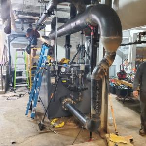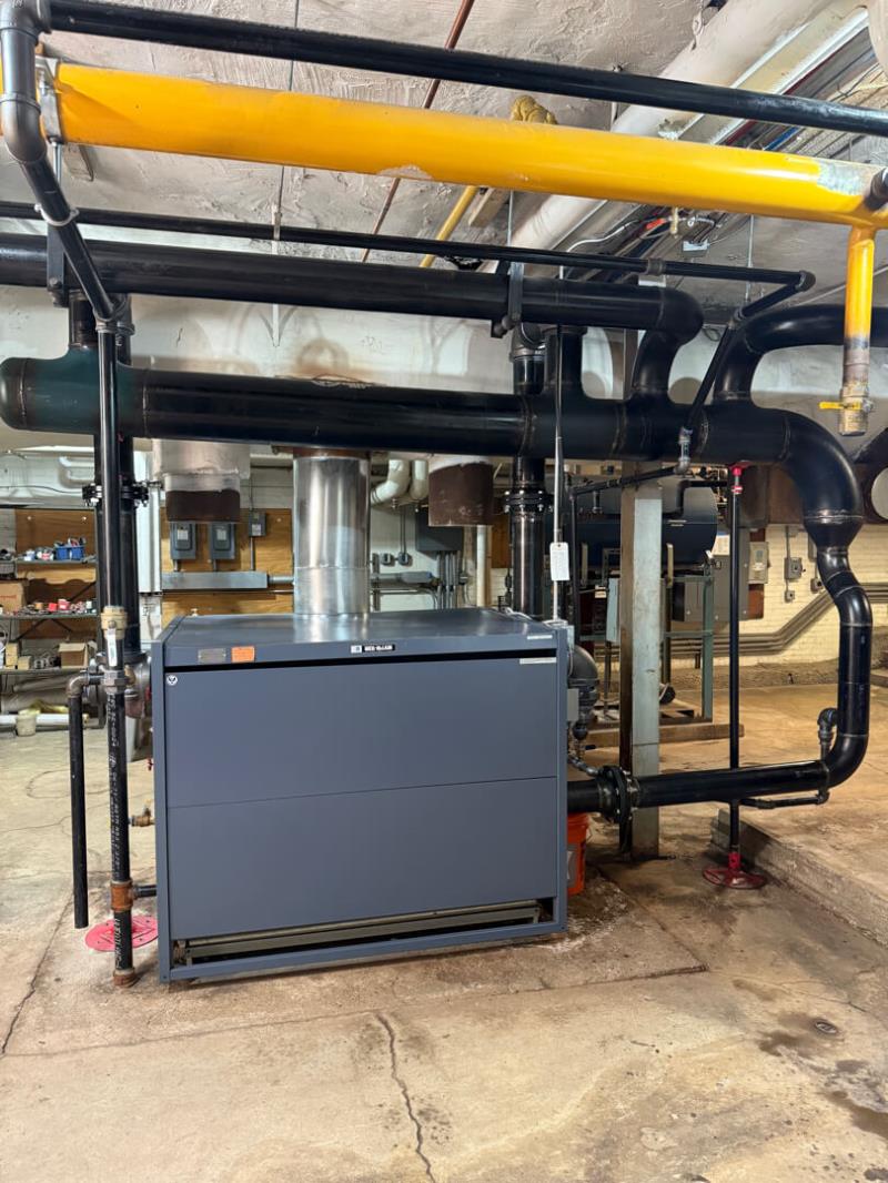This Akron church had a new boiler installed by another company who piped it poorly. Now here is the interesting part. The boiler wasn’t piped wrong by the installer; it was piped to the manufacturer’s minimum specs. This however was not sufficient to produce dry steam. A tremendous amount of water was being tossed up into the steam mains. The water line was always unstable. We re-piped this boiler to the standards of the 1930’s instead of the manufacturers, and it produces dry steam now.